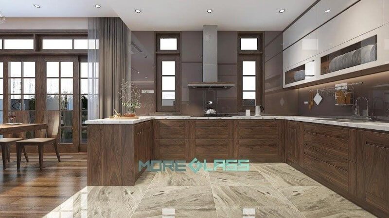Chúng tôi đã thiết kế và thi công nội thất phòng bếp biệt thự, nhà phố cho gia chủ ưa thích sự tinh tế, tối giản nhưng sang trọng của gam màu trầm. Chúng tôi đã sử dụng mẫu kính ốp bếp màu nâu đất MG-017 kết hợp với tủ bếp gỗ để tạo ra bức tranh về sự sang trọng và tinh tế.